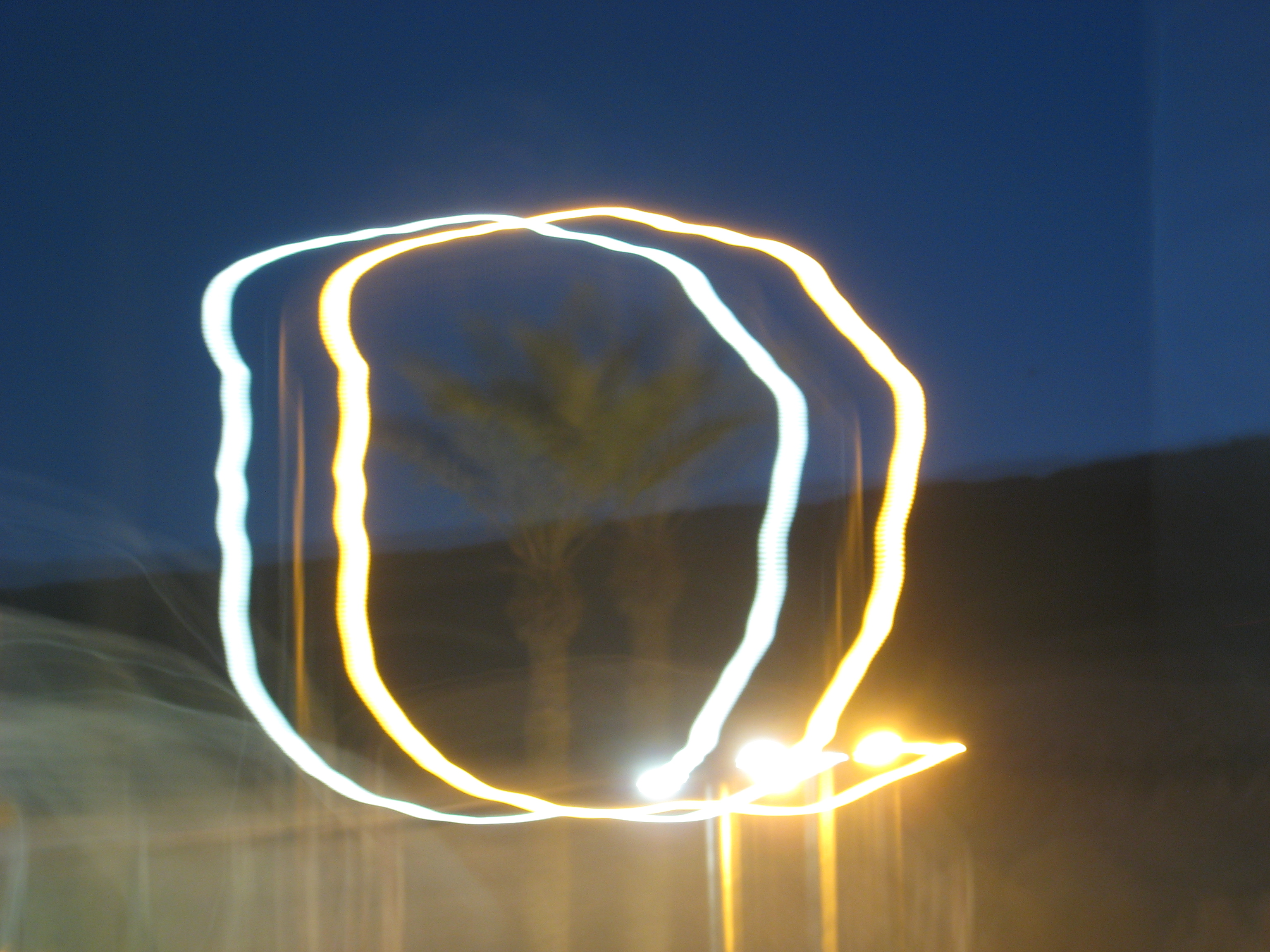 צולם במצלמת קנון A560 (לא להאמין) בצמצם פתוח ל - 15 שניות המסגרת היא תאורת רחוב (עמוד עם שני פנסים) איתה עשיתי את המסגרת לעץ דקל לאחר מכן עשיתי זאת שוב אבל נשארתי לעמוד 5 שניות ראשונות באותו מקום ואז עשיתי את המסגרת ונשארתי שוב 5 שניות כדי לעשות את העץ כפול.
