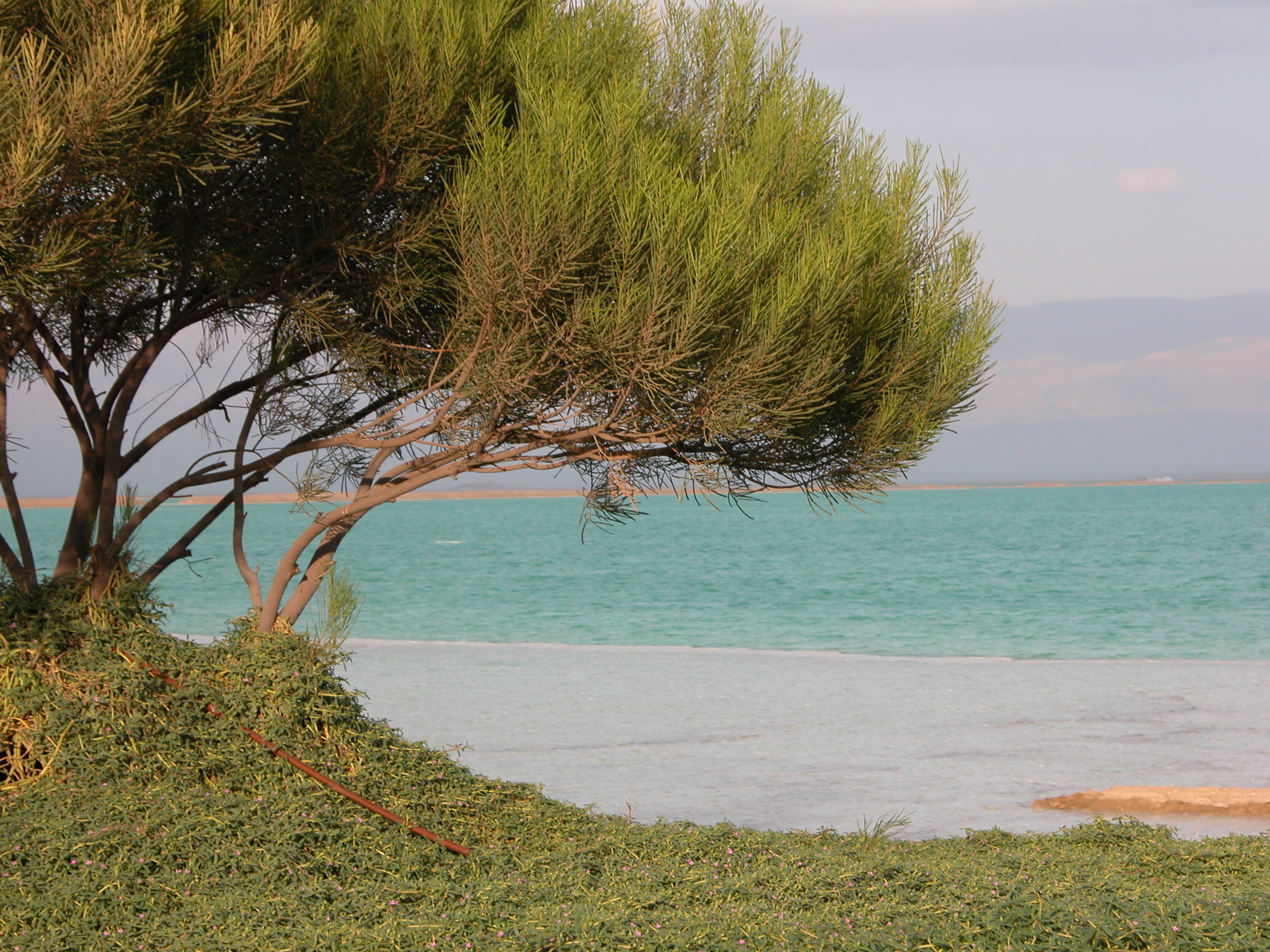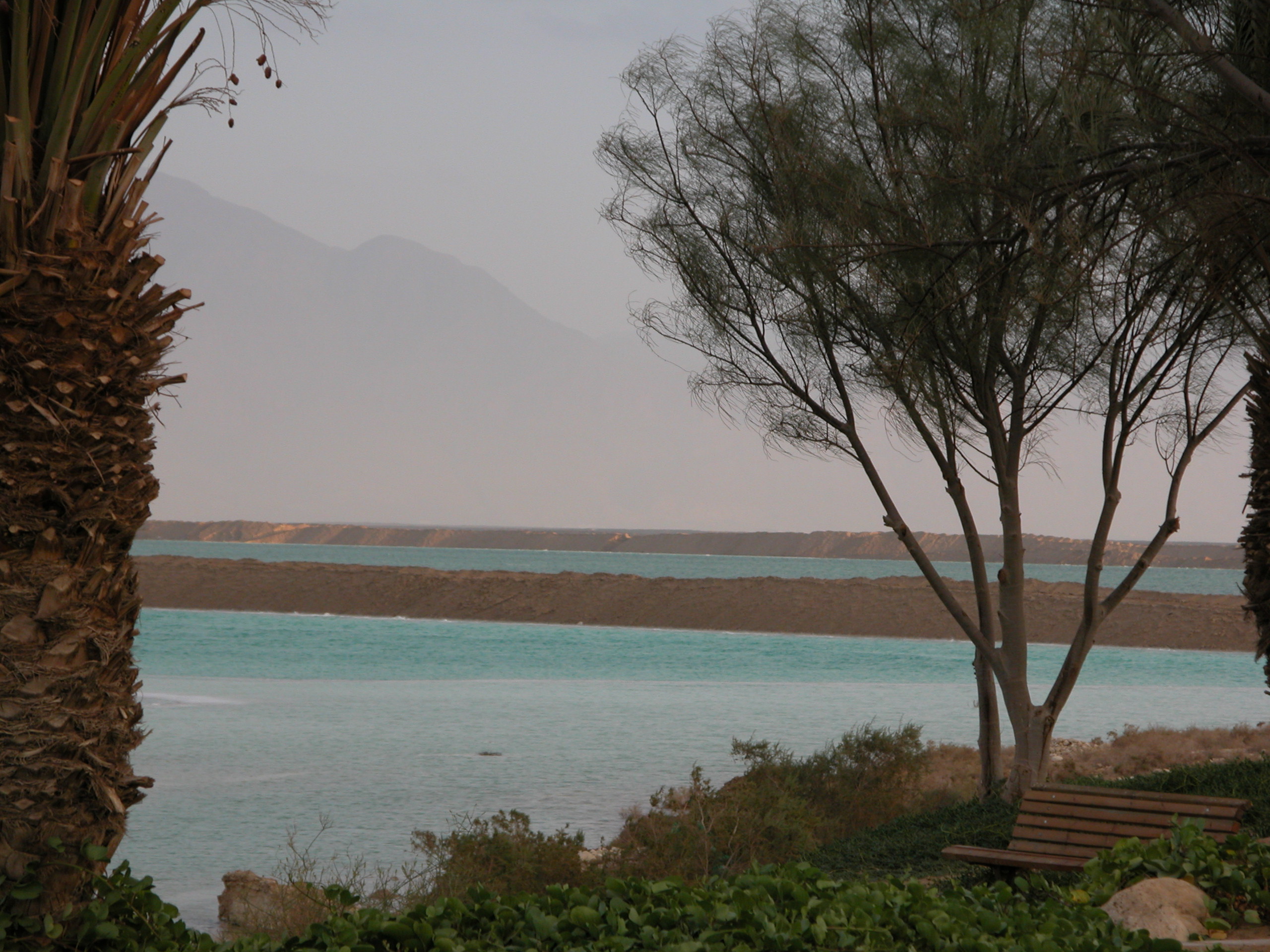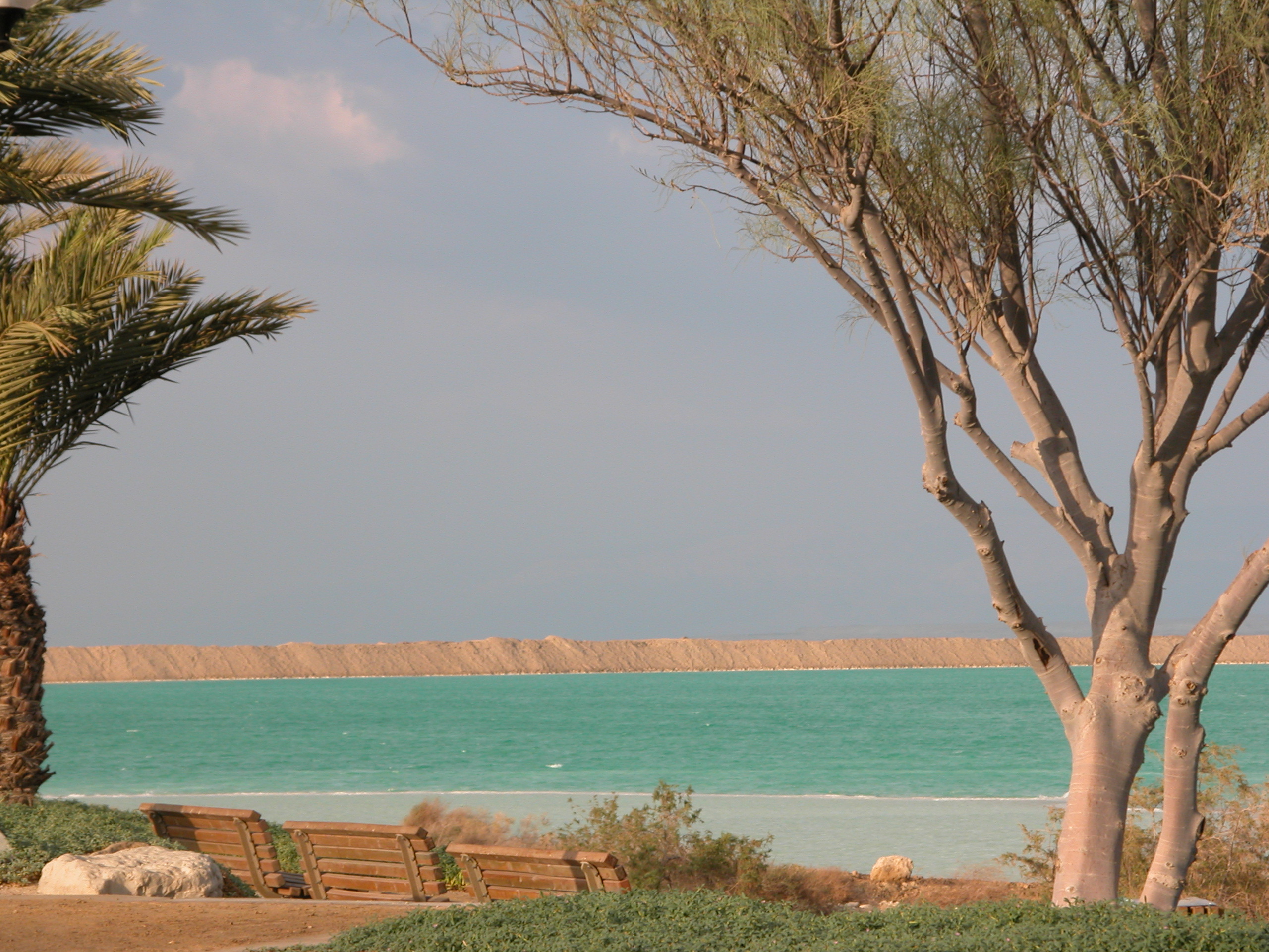 ים המלח, טורקיז, עץ, עצים, צמחייה, ספסל
