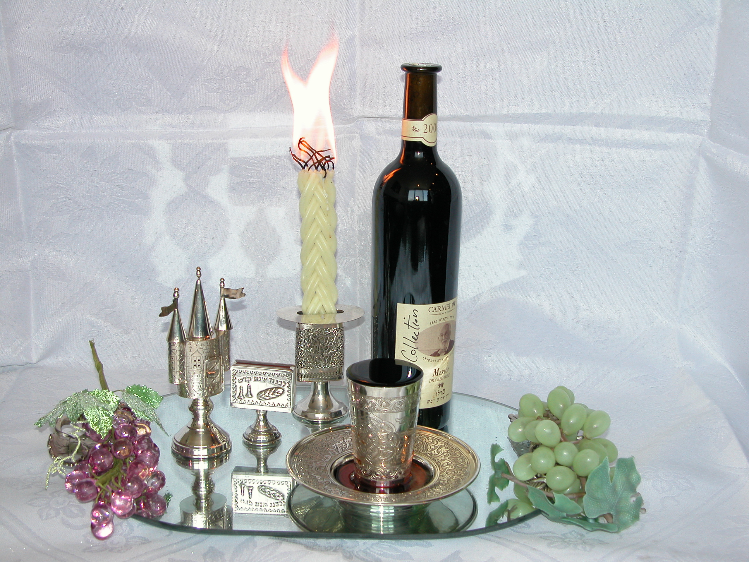הבדלה, יין, ענבים, גביע, נר, גפרורים, בשמים