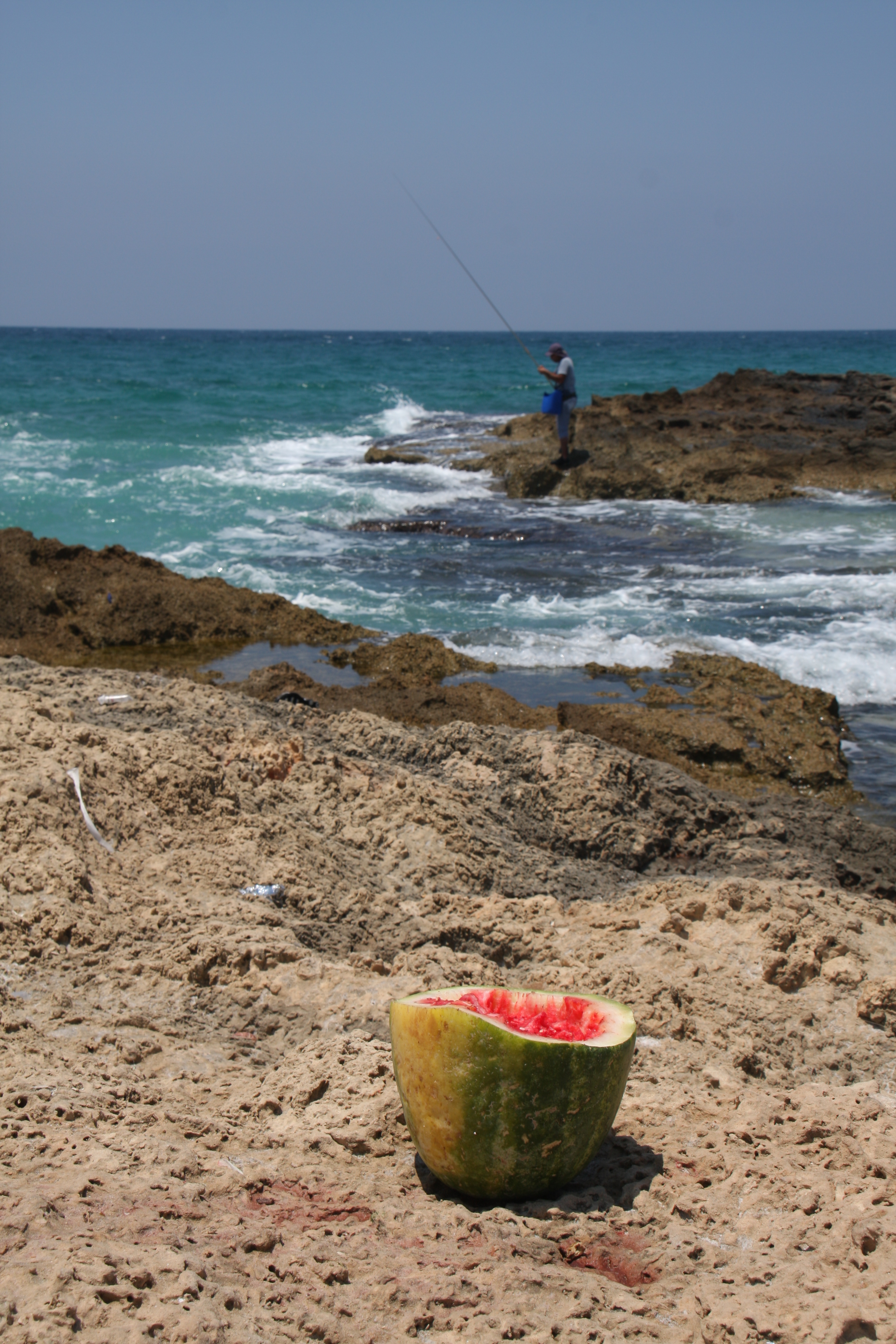 ים, אכזיב, ראש הנקרה, חוף, גל, גלים, דייג, נעליים, אבטיח