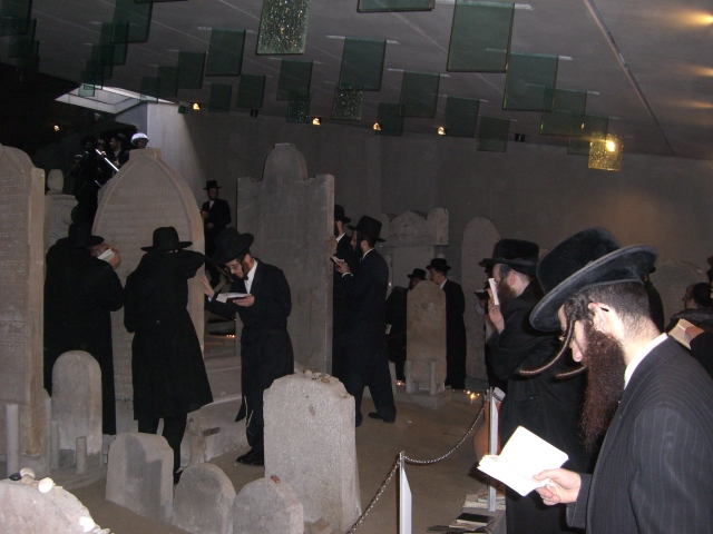פתח קברו של בעל החת"ס. וחסידים ליד הקבר