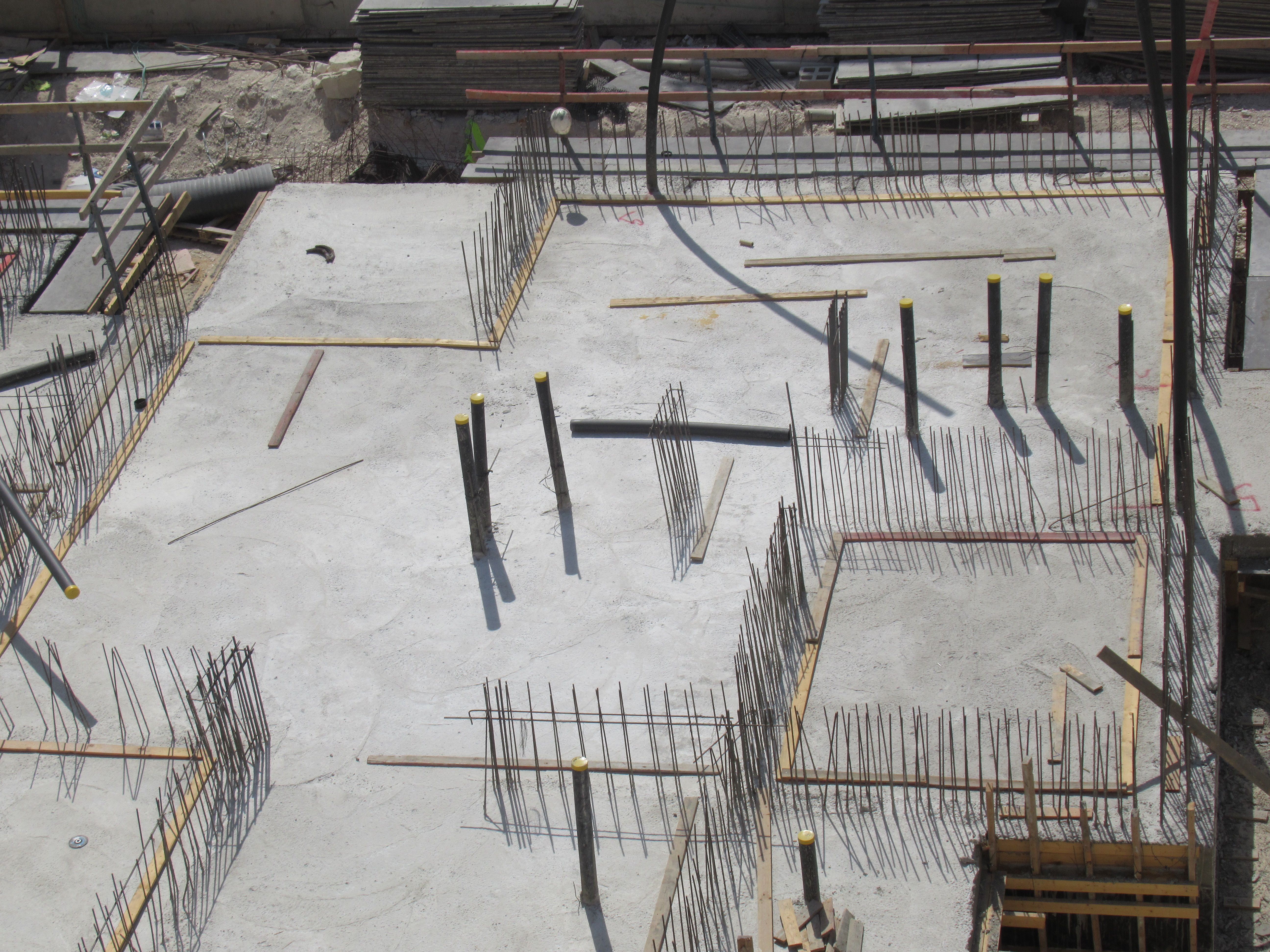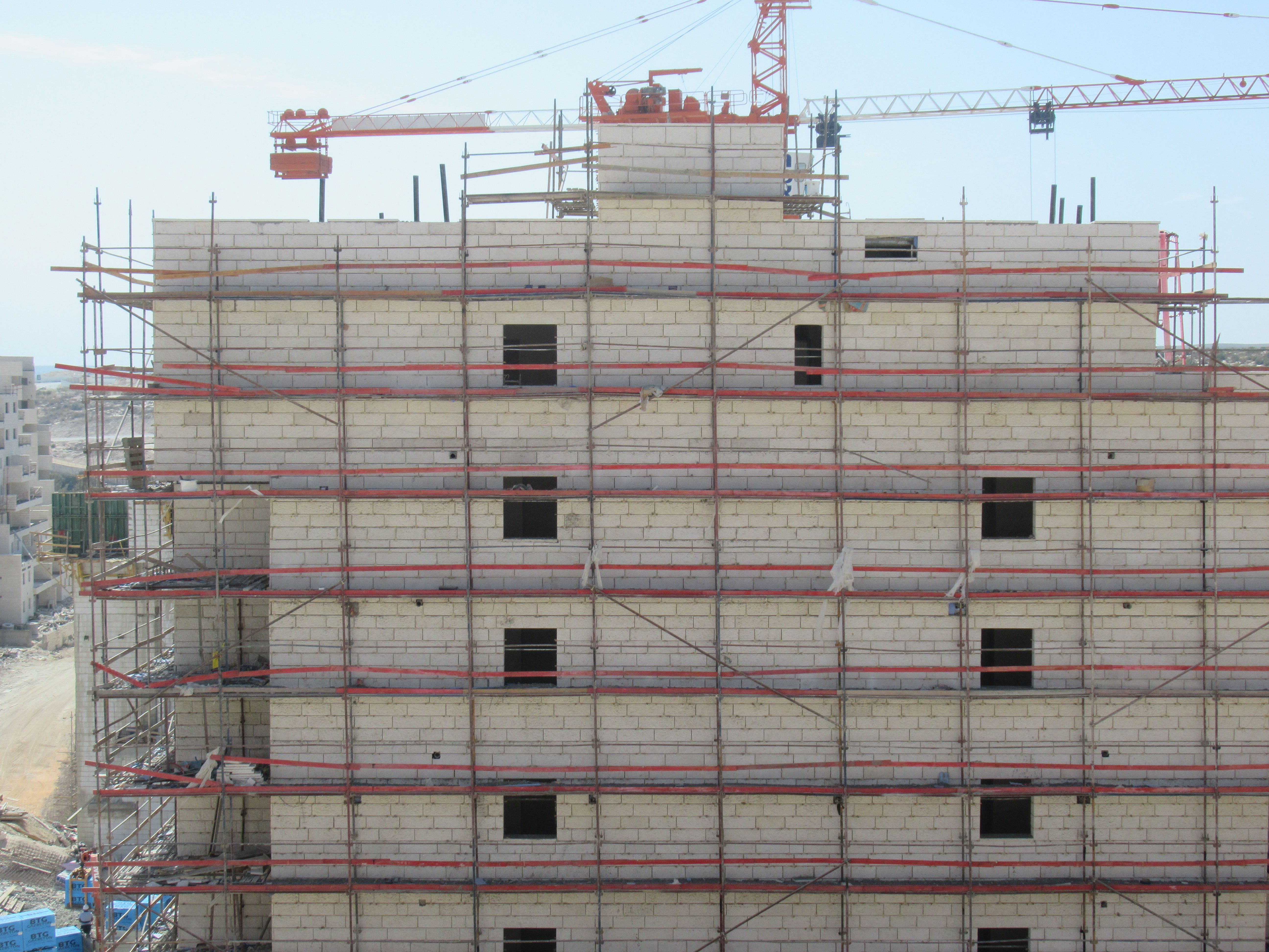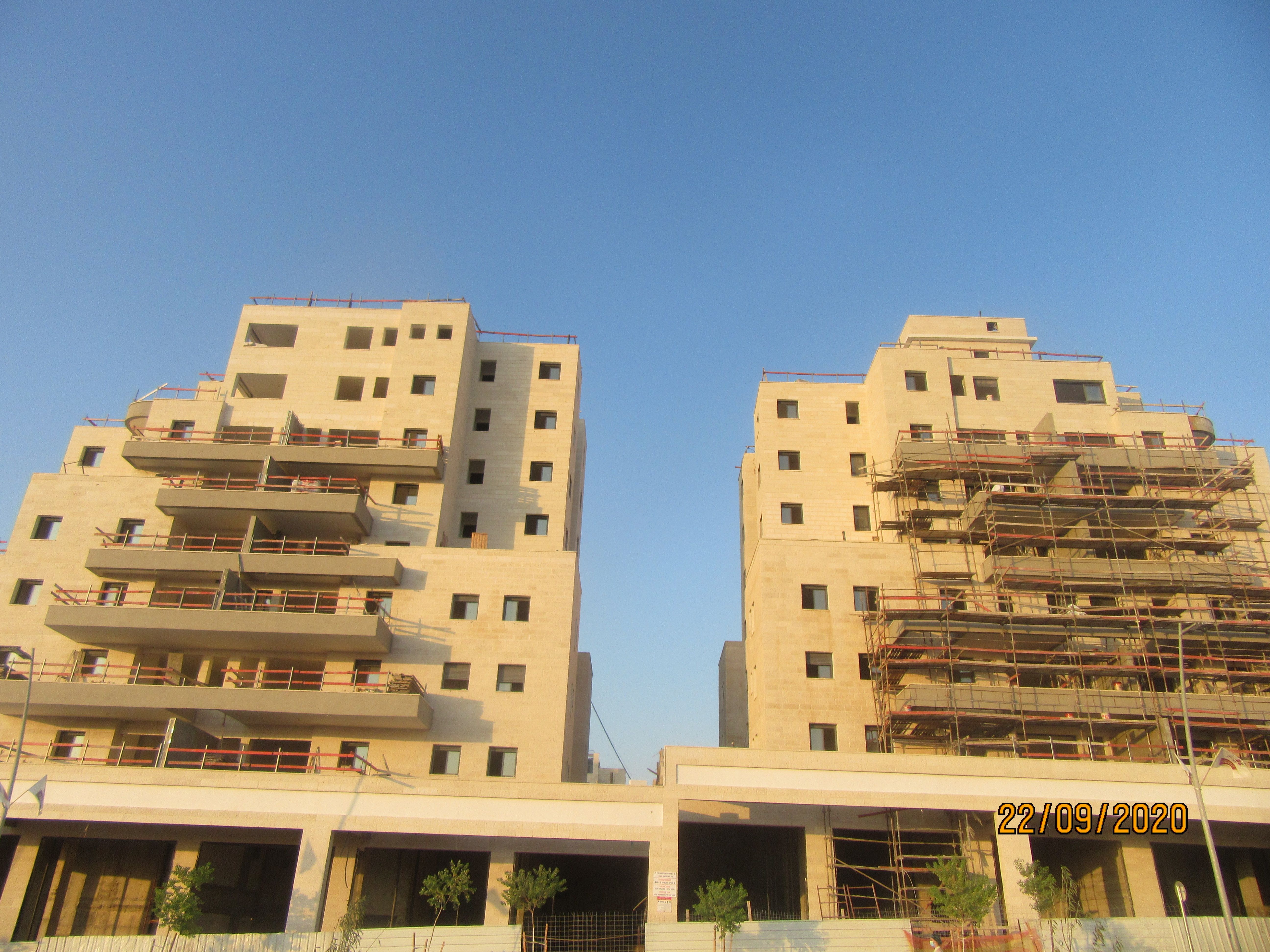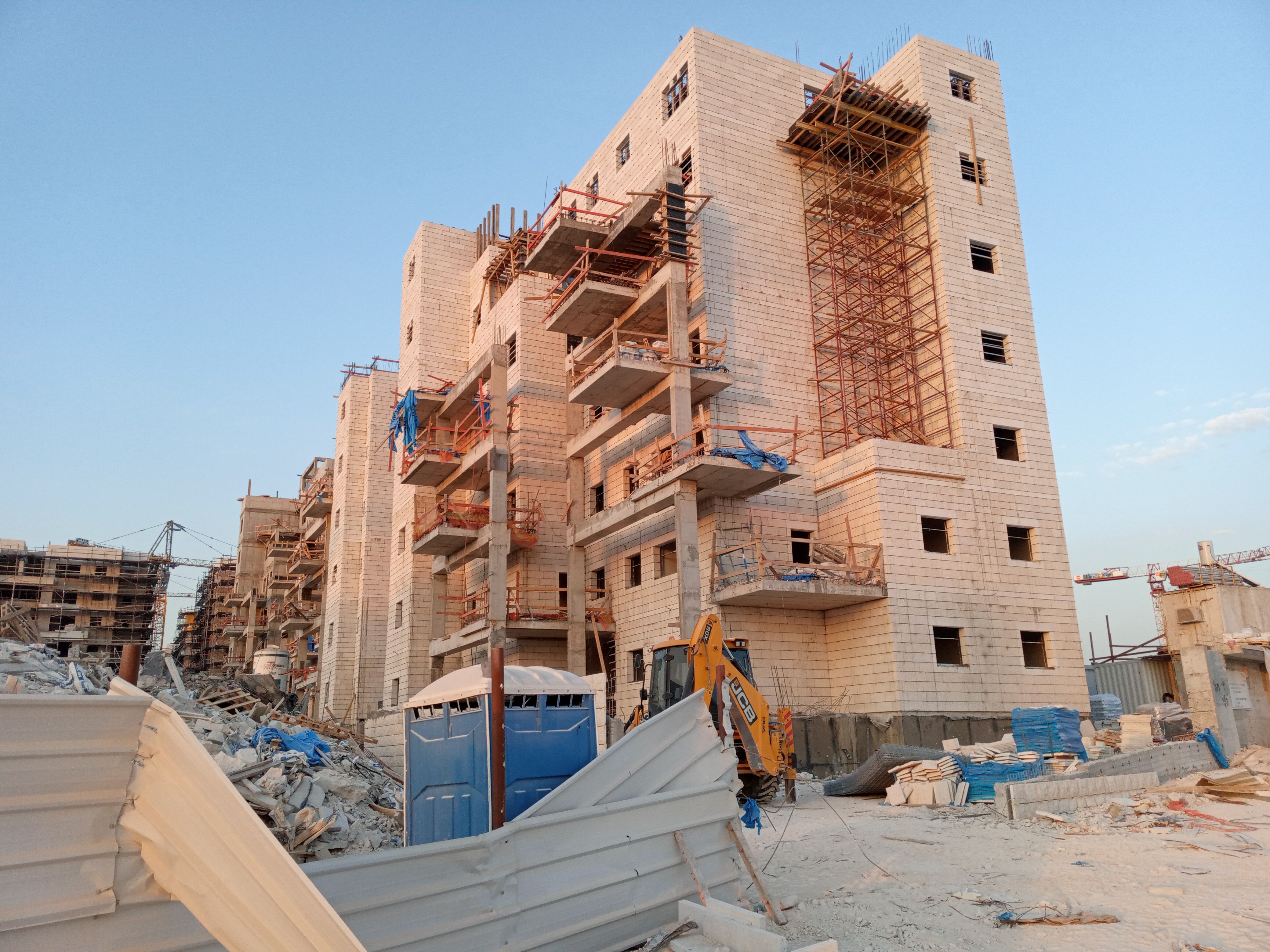שני הבניינים למעלה אחרי הקיר תמך ובתחילת השלד.