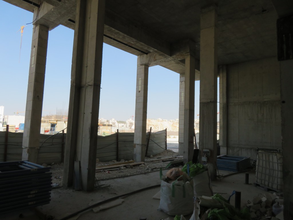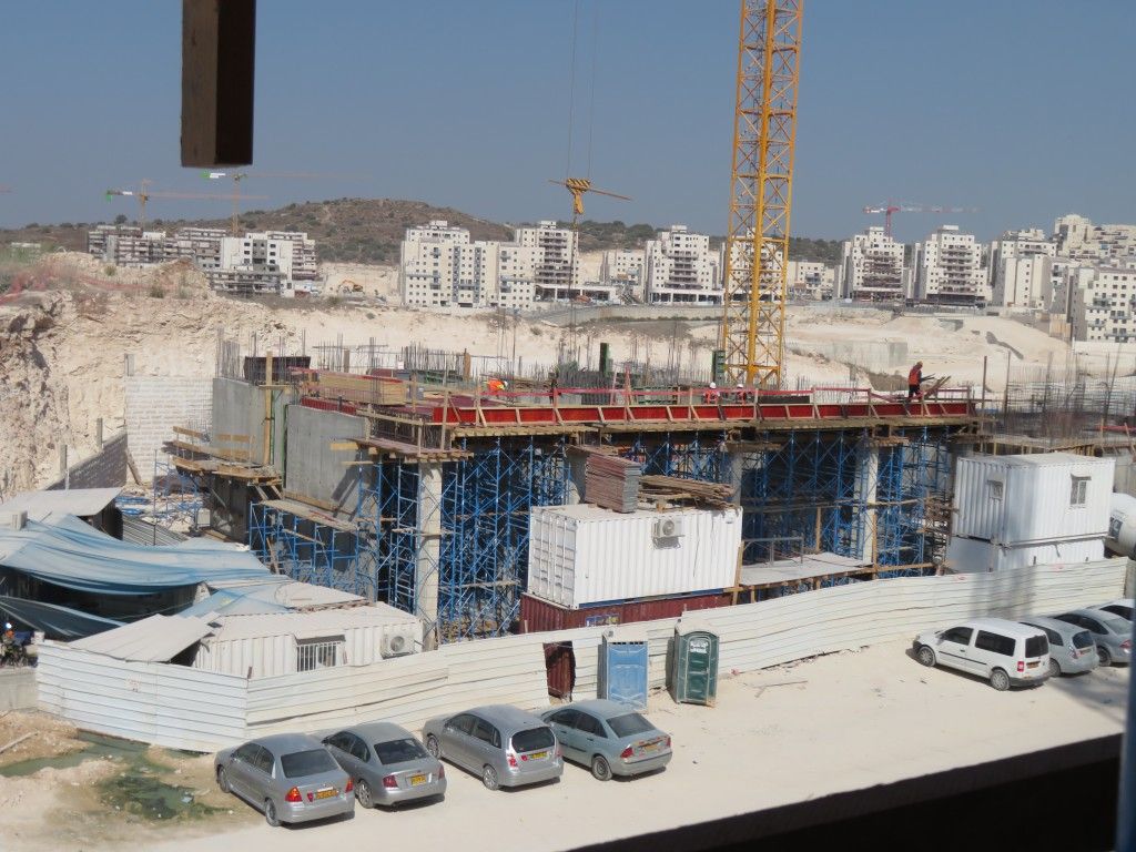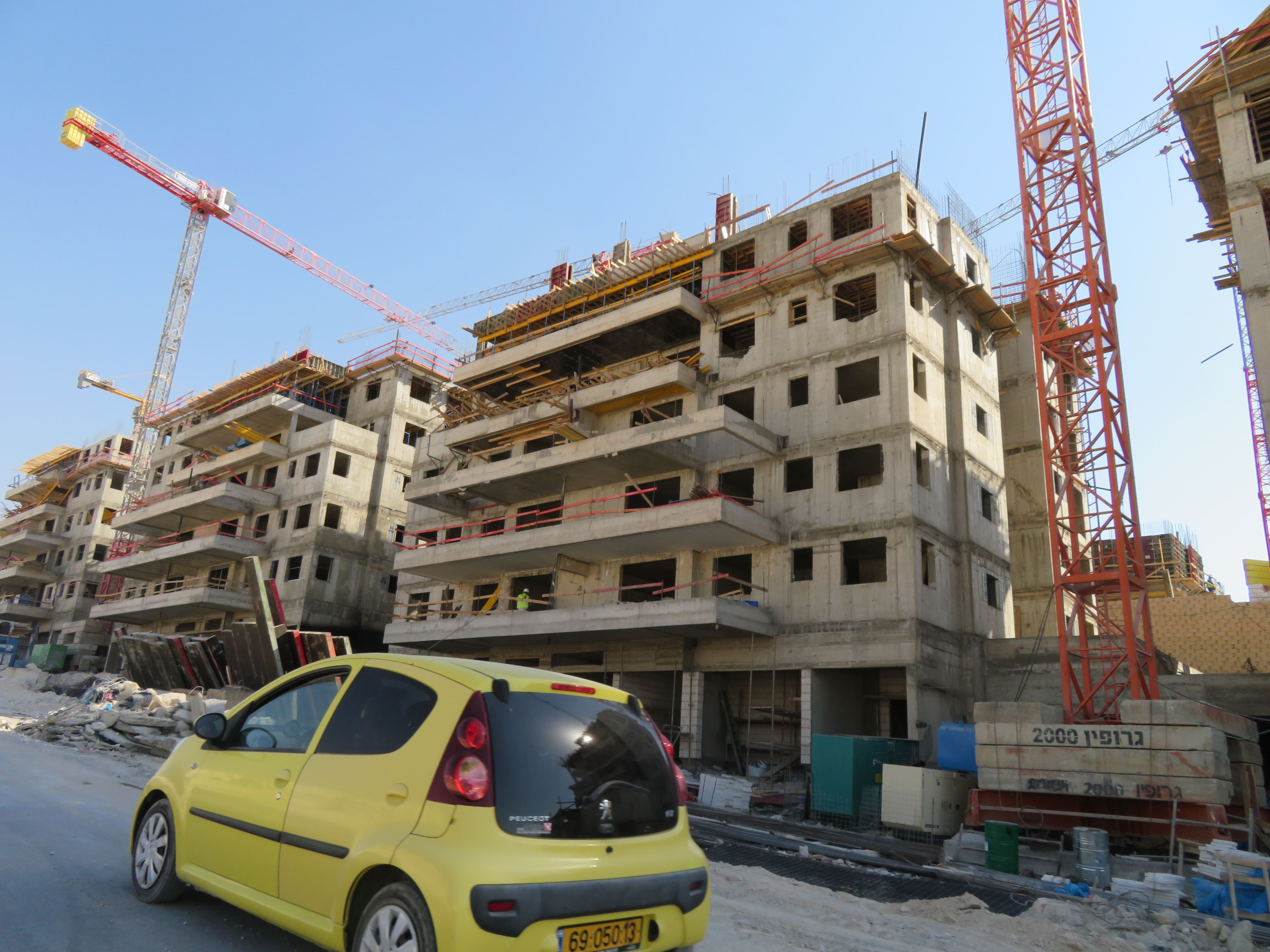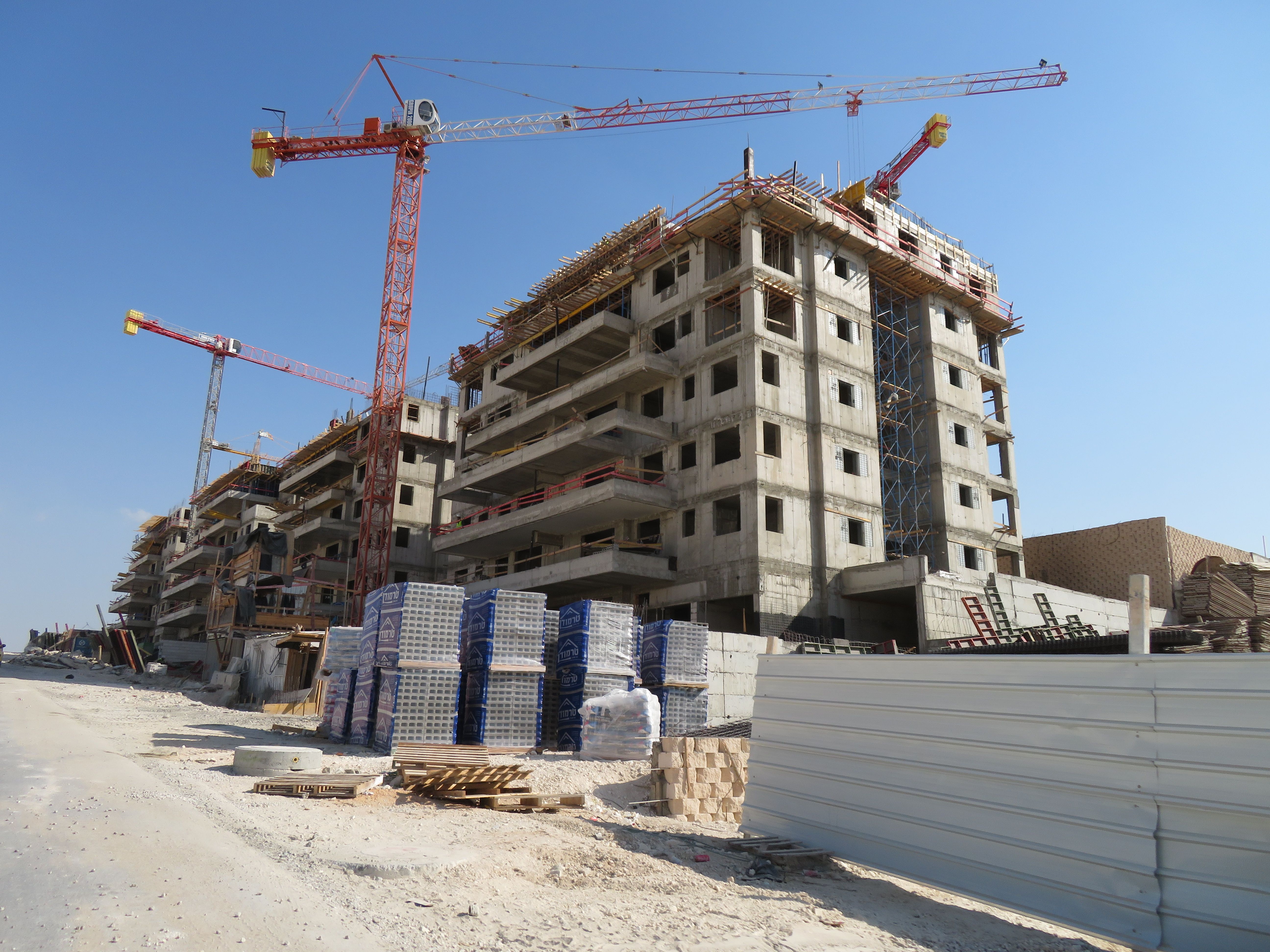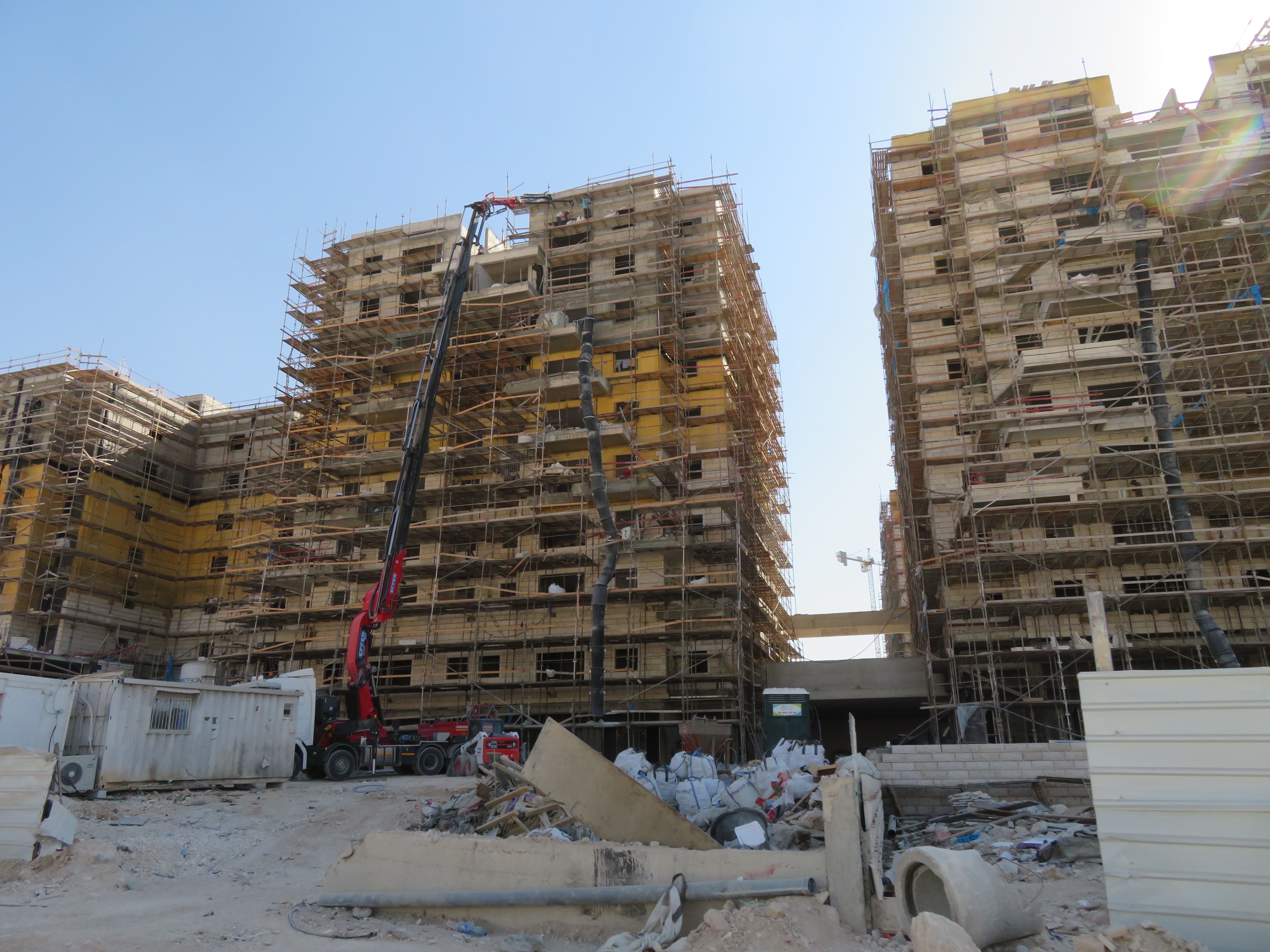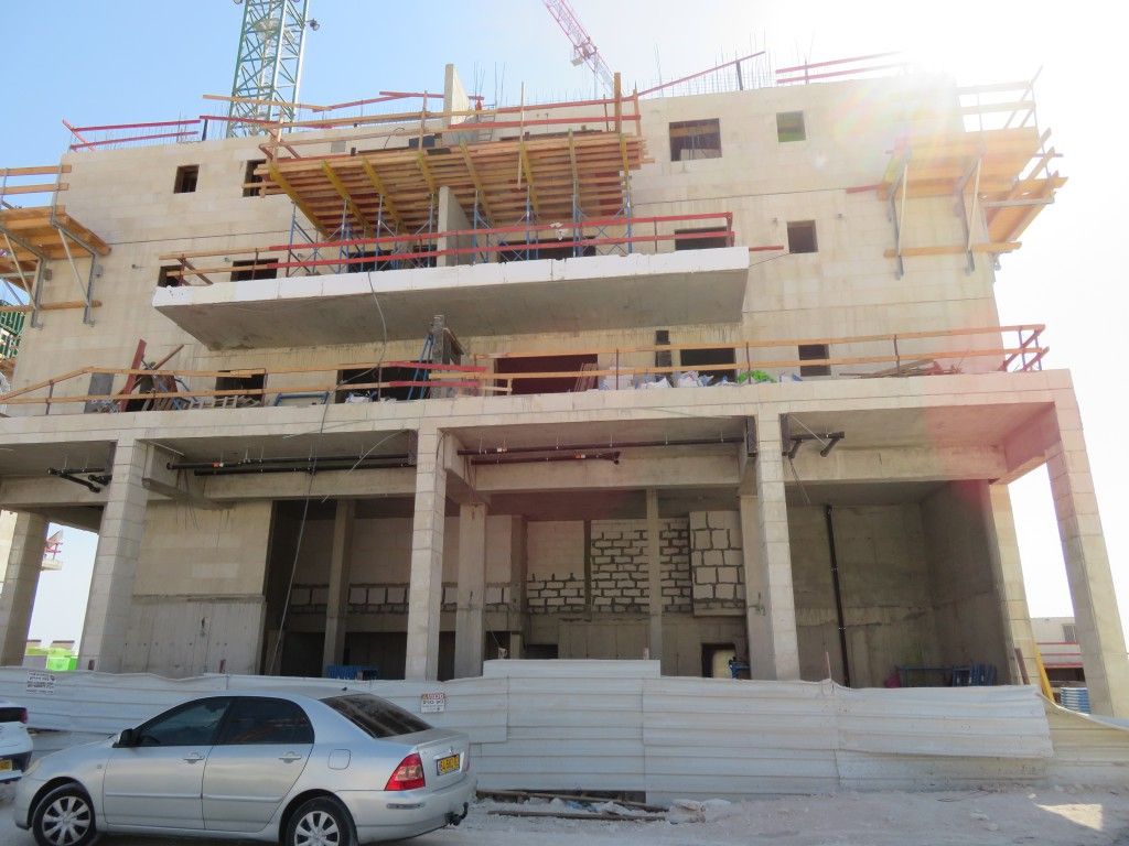 שני הבניינים למעלה אחרי הקיר תמך ובתחילת השלד.
