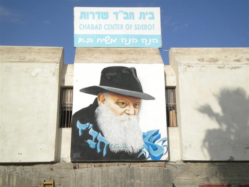 אמש, הם עמדו שעות מתחת לשמש הקופחת של מערב הנגב, ואיירו את פניו של הרבי, מתוך תמונה קטנה בת כעשרים סנטימטרים, על הקיר החיצוני של בית חב"ד.