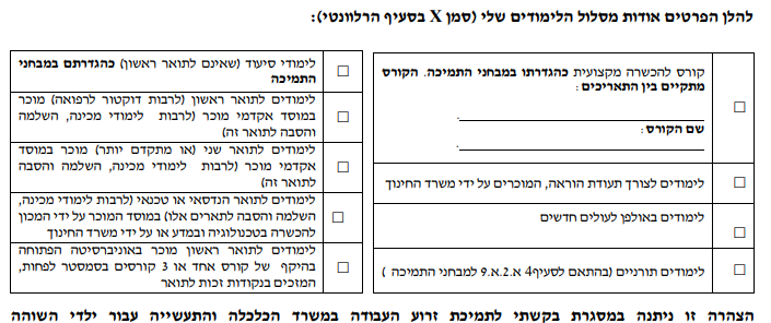 מי יכול לעזור לי, מה למלא בטבלה של הפרטים אודות מסלול הלימודים שלי: