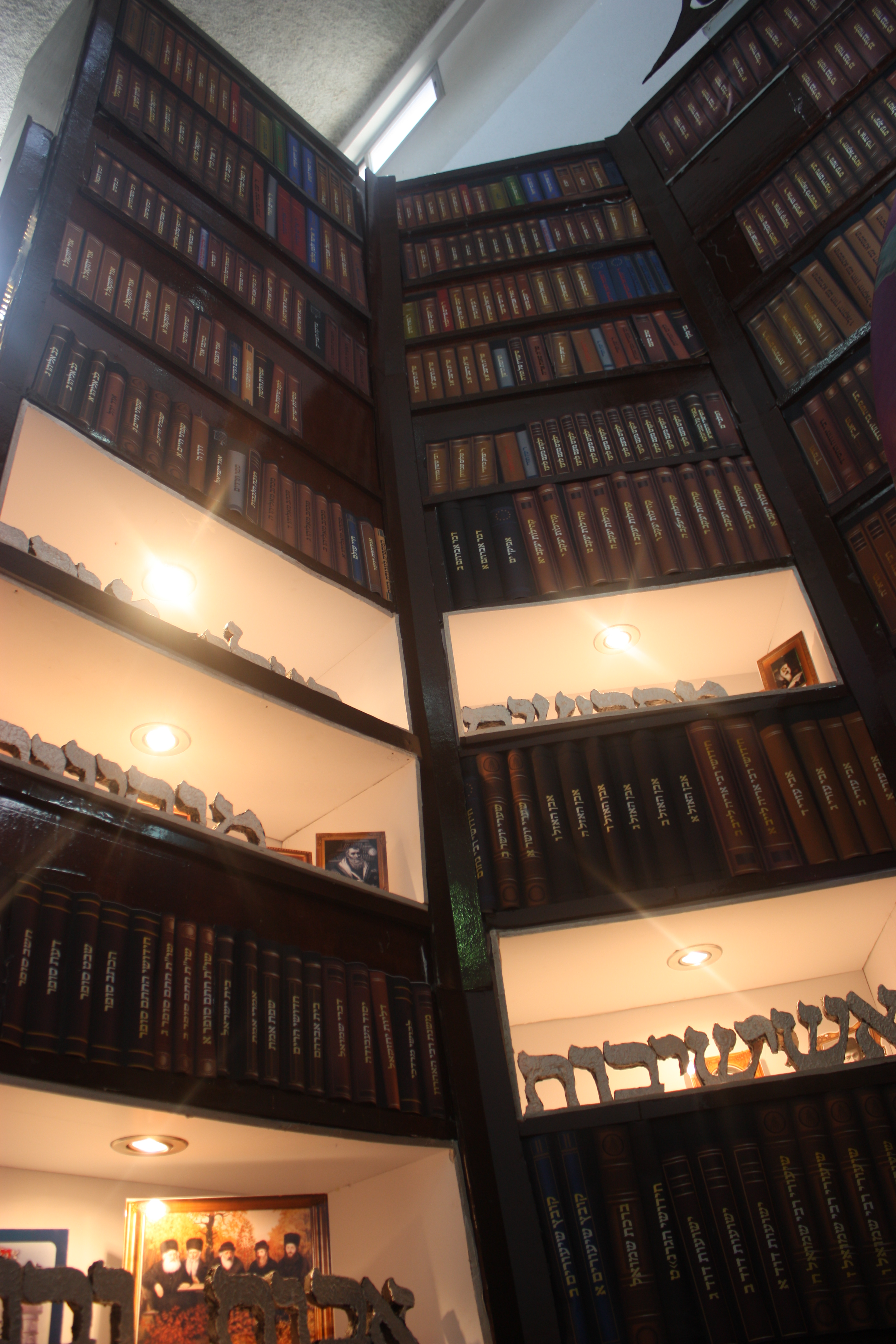 ארון הספרים מחולק לתשעה קטגוריות של רבנים; פוסקים, מנהיגים וכו', מעל כל קטגוריה יש מדף של ספרים הקשורים לאותה קטגוריה למשל: מעל בעלי מוסר יש מדף של ספרי מוסר. כשבכל "ויטרינה" יש תמונות של בעלי המוסר, של הפוסקים. בכל שאר הארון כל הספרים הם שמות של רבנים בסדר אקראי מכל התקופות ראשונים עד אחרוני אחרונים.