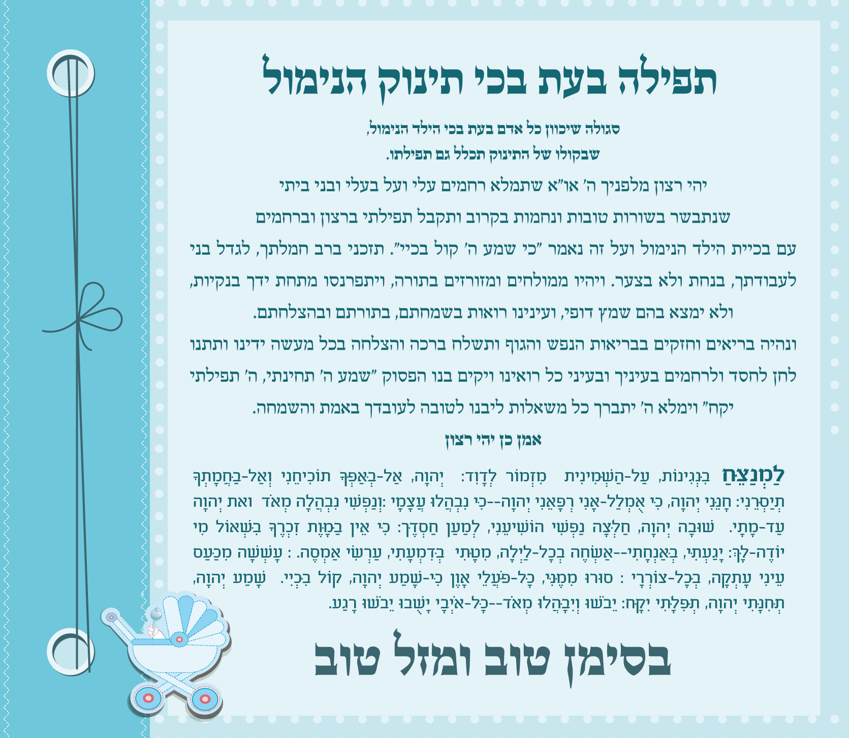 ְויּוְכָלל ְּתִפָלִתי ִעם ְּבִכָיית ַהֶּיֶלד ַהִּנּמֹול, ְויקּוַים ִּבי