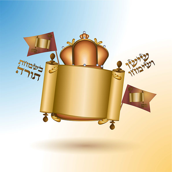 וגם ספר תורה עם כתר סימן לכתר תורה עיטורים יפים ודגלים של שמחת תורה
