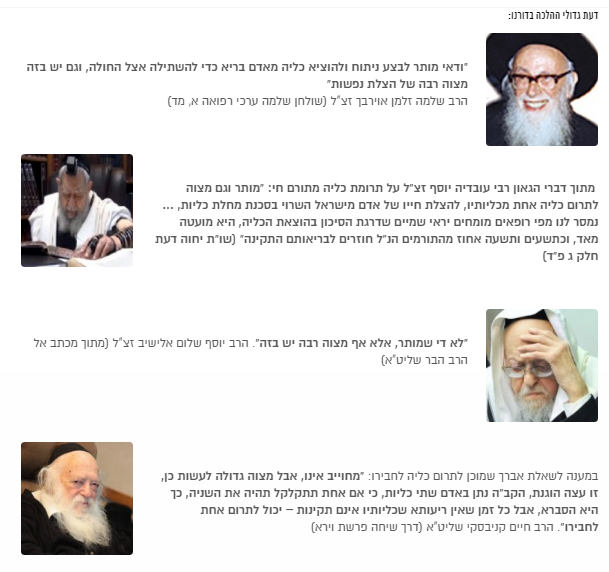 • תשואה כהלכה – הרב שמואל דוד גרוס, רב חסידי גור אשדוד ועוד רבנים מוכרים וידועים בכל שכבות הציבור החרדי.