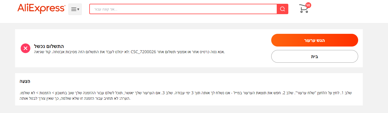 קרה לכם פעם שהתשלום נכשל בעליאקספרס?