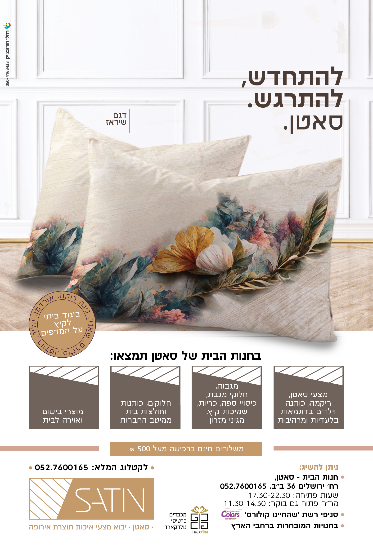 סאטן - יבוא מצעי איכות, מתחדשת בסטים חדשים ואני ב"ה על העיצוב.