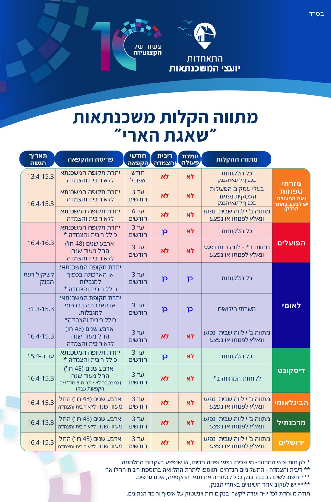 אני יעלה כאן את ריכוז פרטי ההקלות משלל הבנקים