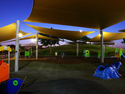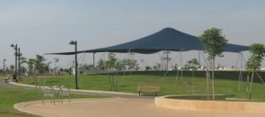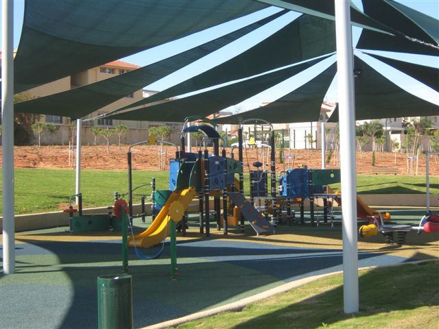 הפארק חשוף לשמש והעצים בו עדיין צעירים ולא נותנים צל. בנקודות שונות הוצבו יריעות הצללה, כולל באזור מתקני המשחקים.
