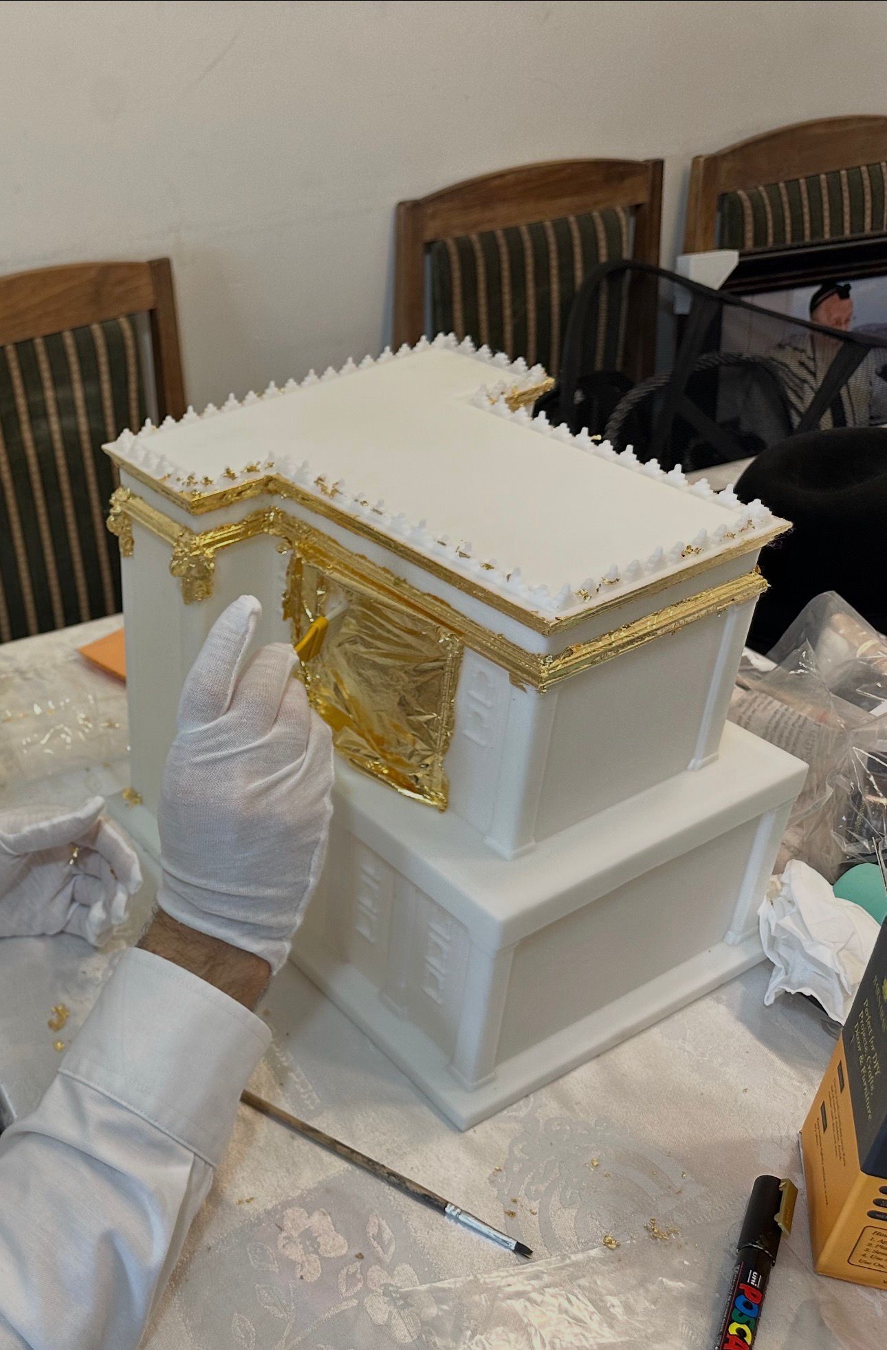 המודל בנוי בדיוק מירבי לפי המידות בהלכה, וכולל פירוט של המבנים, החומות והעזרה, עם גימור יוקרתי וציפוי עלה זהב אמיתי שהודבקו בעבודת יד✨