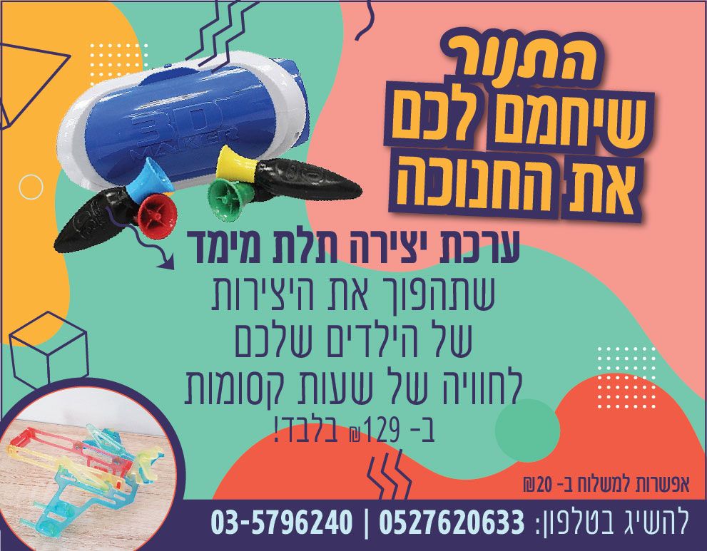 לכבוד חנוכה מחיר מבצע 129 ש"ח במקום 150