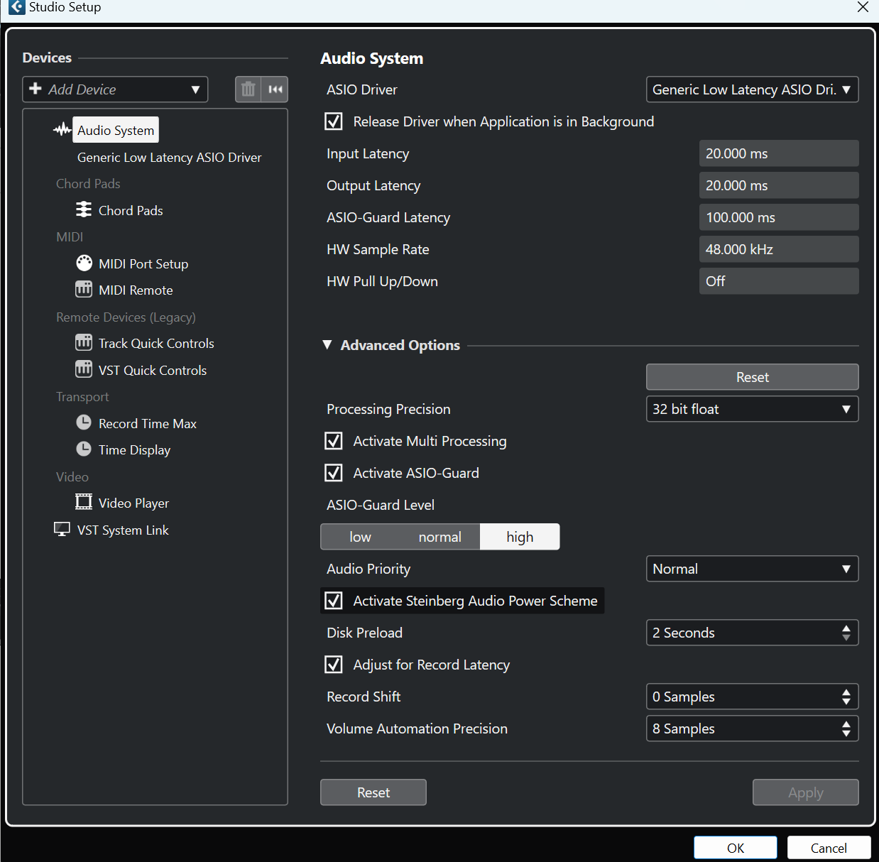 תסמן בוי את האפשרות שלActivate Steinberg וכו'