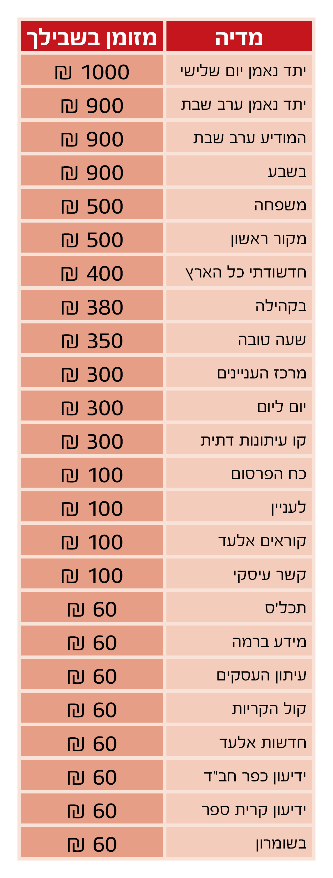 שמעתי גם על כאלו שלוקחים 1500 ש"ח למודעה.