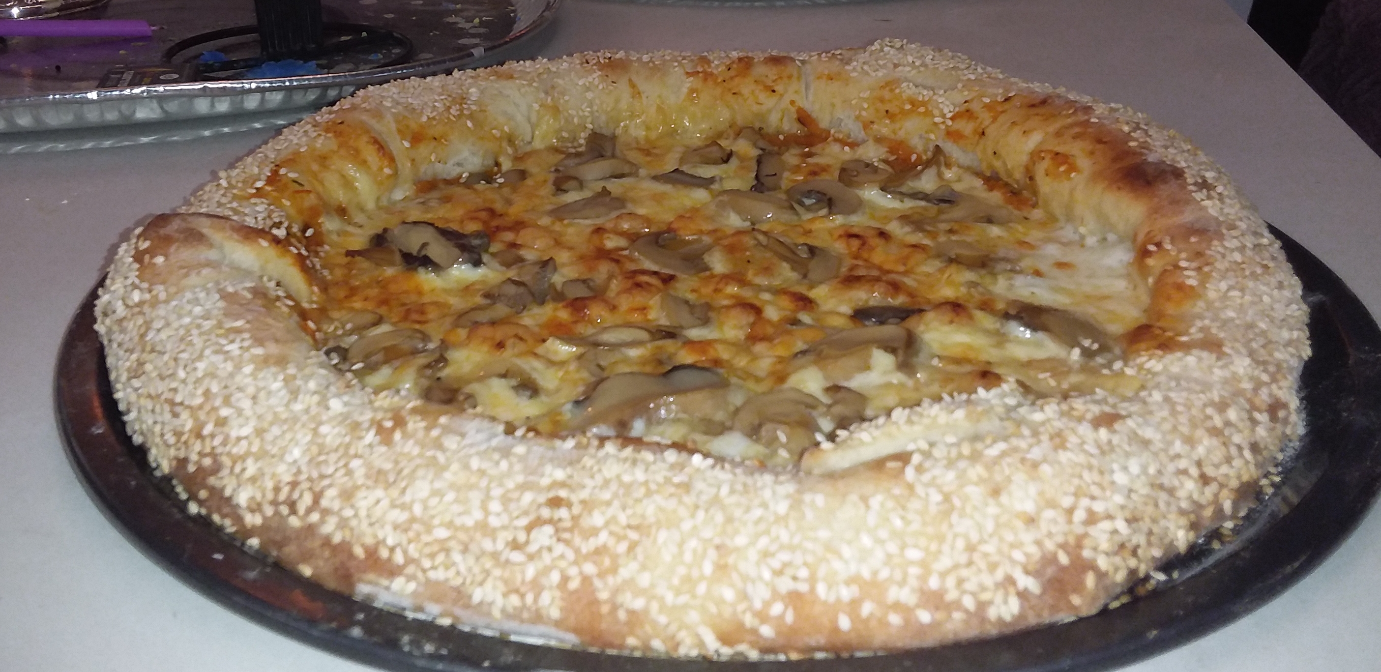 שמה פירורי גבינה בשוליים (כאמור - גב"צ, מוצרלה או בולגרית, מה שיש בבית) מקפלת את השוליים המיותרים ע"ג הגבינה ומהדקת, מרטיבה את השוליים במים ומפזרת שושמשום.