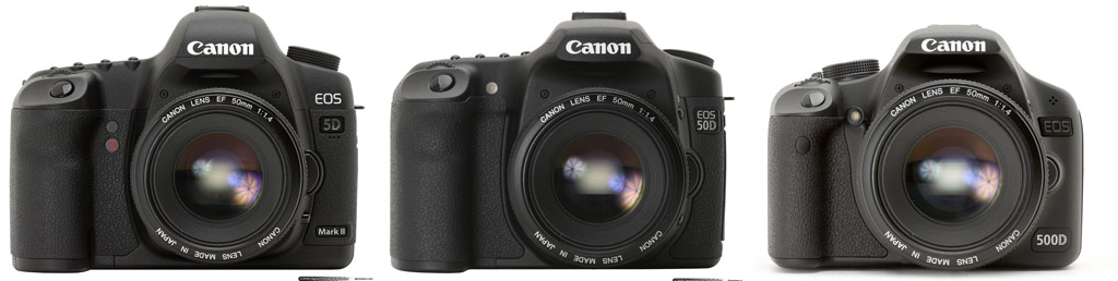 מימין לשמאל: 5D, 50D, 500D. (הלינקים הם לסקירת המוצרים באתר Dpreview).
