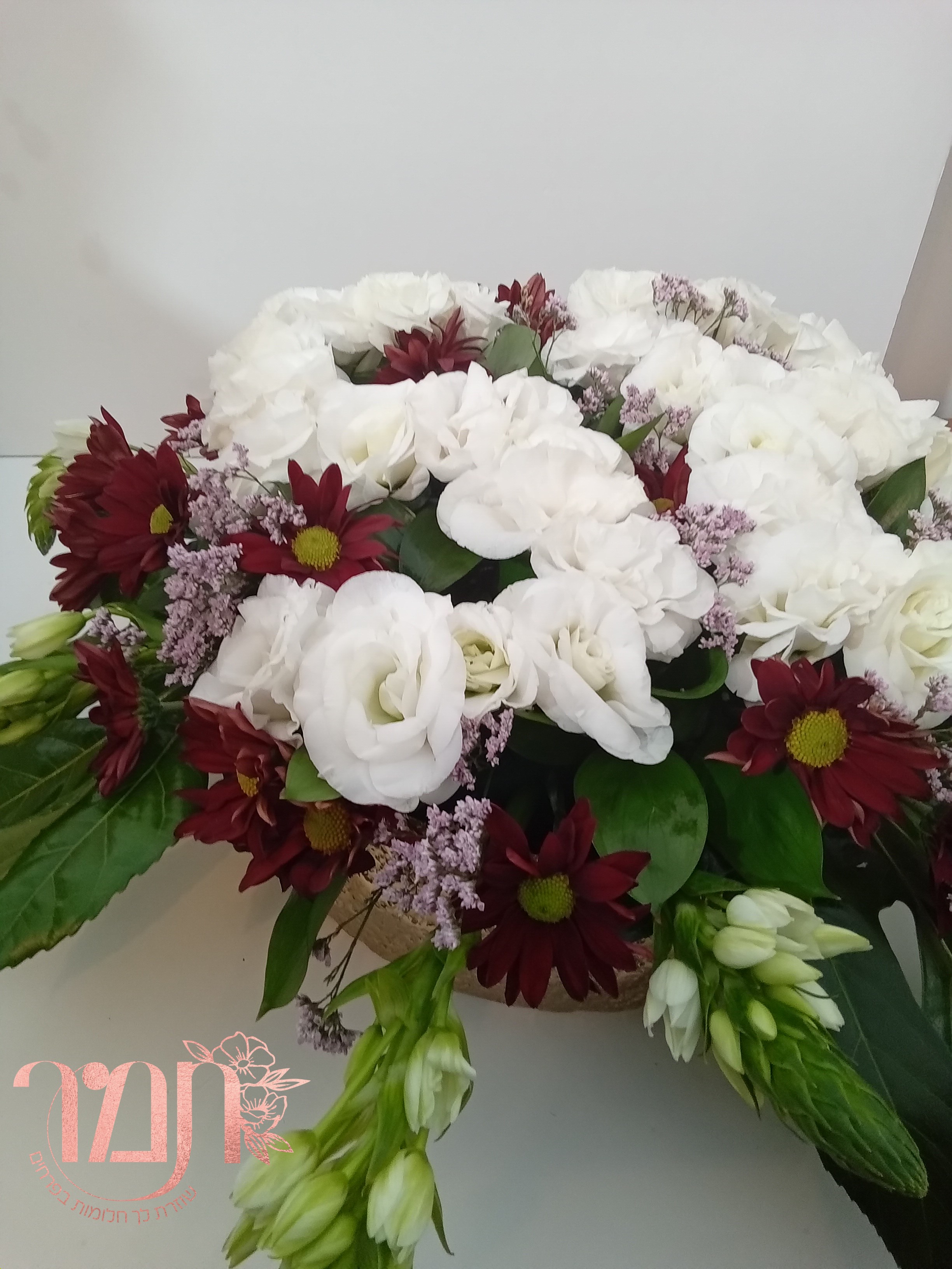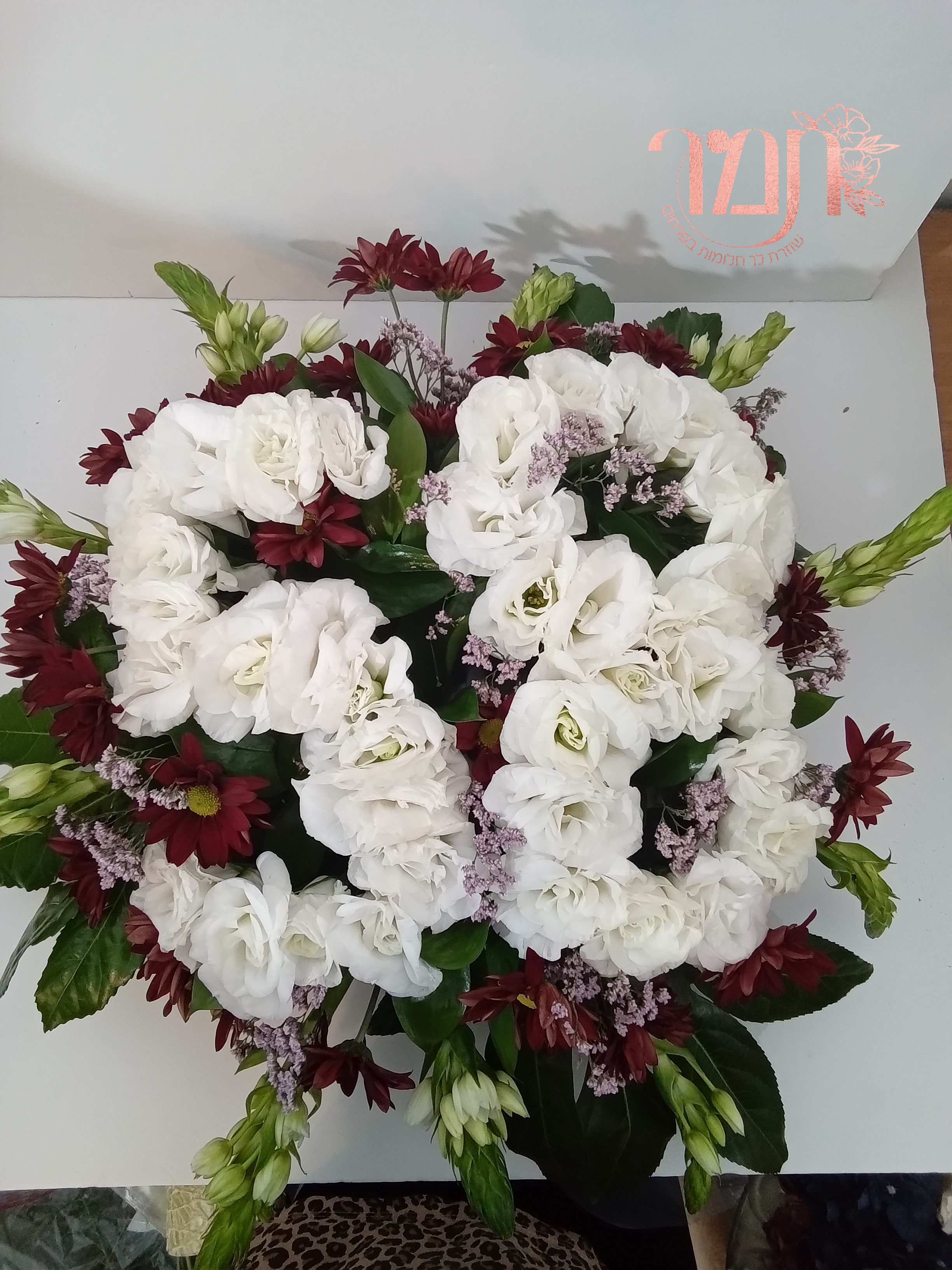 סידור פרחים חיים מעוצב עם המספר 58