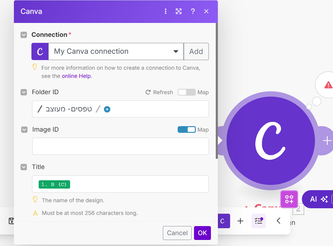 אשמח לדעת איך אפשר ליצור את החיבור מהגוגל שיטס לקנבה, ואח"כ איפה ממפים את השדות שיכנסו ישר לעיצוב