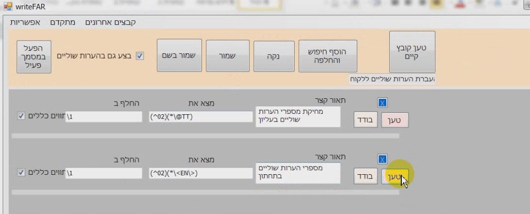 יש עוד אפשרות נוספת, כאשר רוצים להפעיל את זה על קבצים מרובים ולשמור אותם בפורמט RTF, כמו שיש הנוהגים לעשות את כל הקידוד בפורמט DOCX שהוא יותר קל יחסית, ורק לאחר מכן לנקות רווחים ואנטרים מיותרים ולשמור כRTF כהכנה ליבוא של תג. ואת זה אפשר לעשות לכל הקבצים יחד, ולא לדאוד לכל קובץ בנפרד.