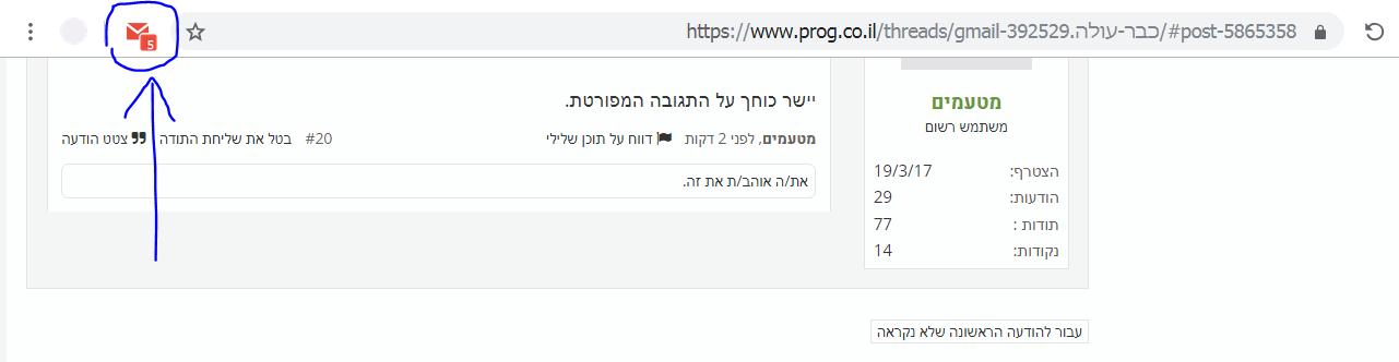 בתמונה רואים שיש 5 הודעות שעדיין לא פתחתי: