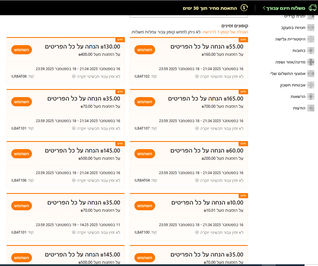 אבל כשאני פותחת קופונים כתוב לי שאין קופונים זמינים