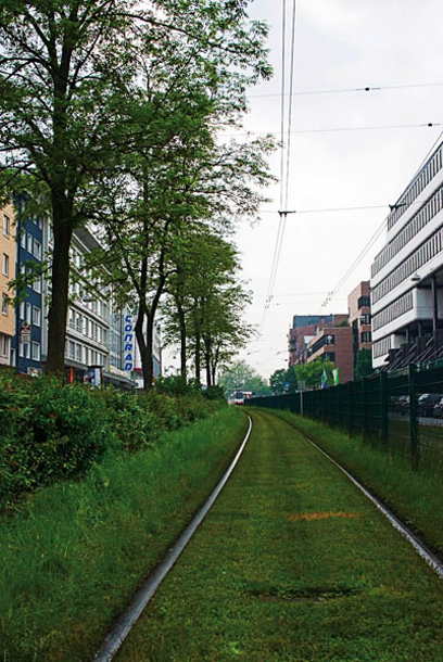 קווים מובילים קלאסיים הם הגדר, מסילת הרכבת, שורת הבניינים - כולם מובילים את עין המתבונן בתמונה.